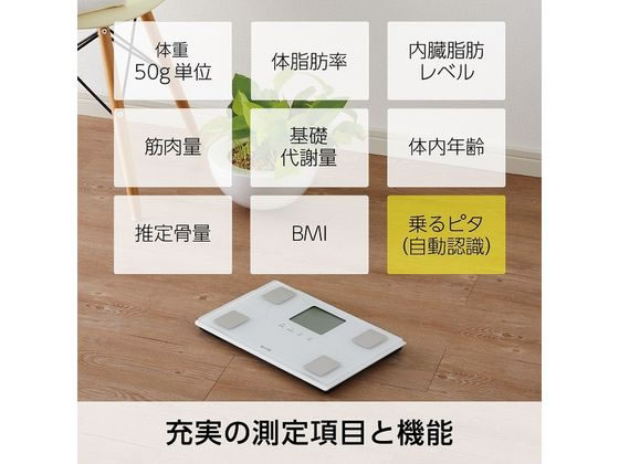 50g単位の高精度測定。乗るだけ測定「乗るピタ」機能