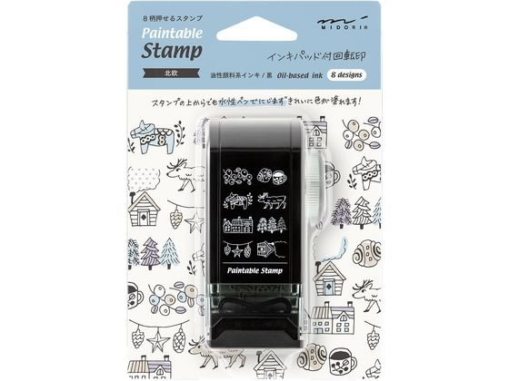 インキパッド付きなのでスタンプ台は不要。8つの繊細な柄をきれいにスタンプすることができます。柄の切り替えは、手が汚れる心配がないダイヤル式。押した絵柄の上から水性マーカーで色を塗ってもにじみません。約1000回押すことができますが、薄くなったら別売りの「補充インキ」で補充してください。北欧らしい穏やかで自然を感じさせるモチーフは、組み合わせて押すことでストーリーが感じられるデザインです。
