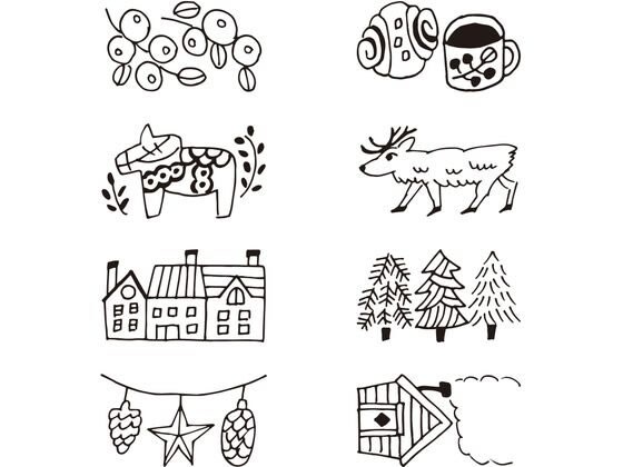 北欧らしい穏やかで自然を感じさせるモチーフは、組み合わせて押すことでストーリーが感じられるようなデザインです。