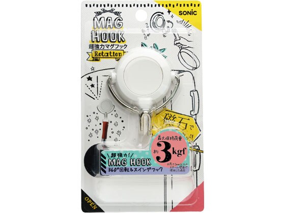 ソニック 超強力マグフック 3kg 回転フック 白 MG-7483-W マグネットフック マグネット 掲示物留め 吊下げ POP 掲示