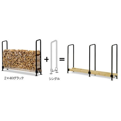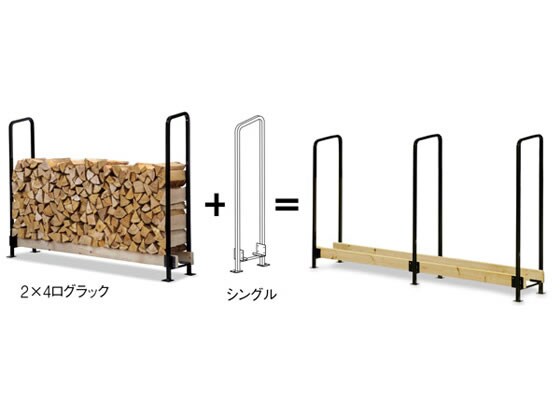 オプションのシングルを加えることで、仕切り付きのロングな薪棚に!