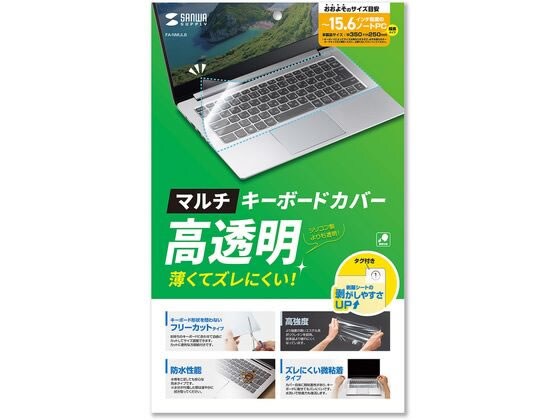 様々なパソコン、機器に対応するシートタイプのマルチキーボードカバーです。フリーカットタイプなので、好きなサイズにカットできます。方眼紙が付属されているので、お好みのサイズにカットしやすくなっています。0.15ミリの超薄、高透明素材で、文字がくっきり見えます。材質は無黄変タイプで、経時変化により製品が黄色くなるのを防止できます。ホコリの侵入からキーボードを守ります。