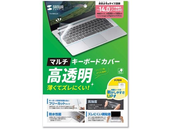 様々なパソコン、機器に対応するシートタイプのマルチキーボードカバーです。フリーカットタイプなので、好きなサイズにカットできます。方眼紙が付属されているので、お好みのサイズにカットしやすくなっています。0.15ミリの超薄、高透明素材で、文字がくっきり見えます。材質は無黄変タイプで、経時変化により製品が黄色くなるのを防止できます。ホコリの侵入からキーボードを守ります。