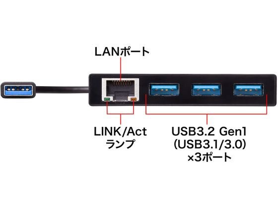 【お取り寄せ】 サンワサプライ USB3.2 Gen1 ハブ付き ギガビットLANアダプタ LANアダプタ ネットワーク機器 パソコン 家電