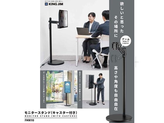 【お取り寄せ】送料無料 キングジム モニタ-スタンド キャスタ-付き FMN110-BK ディスプレイアーム 関連品 デイスプレイ パソコン 家電
