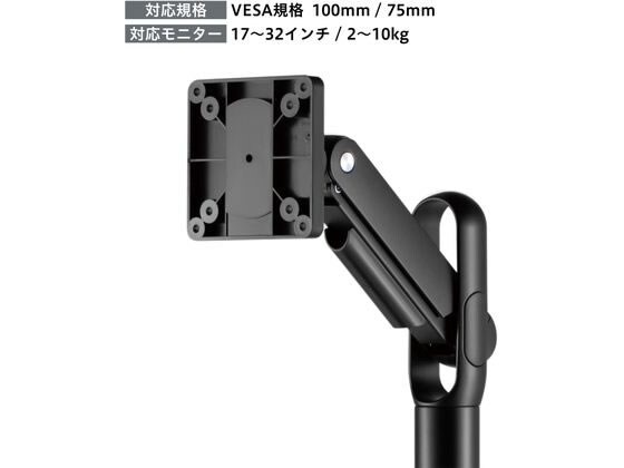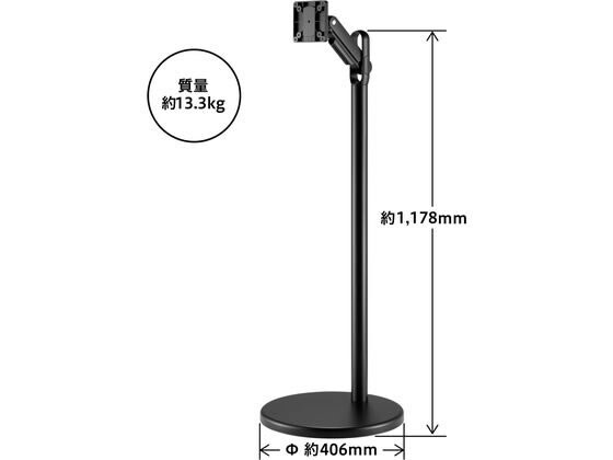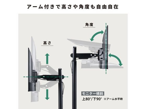 ※アーム水平時モニター回転 ±90°【ご使用上の注意】組み立て時、一部の作業については必ず大人二人以上でおこなってください。本製品に取り付けられるモニターの質量は2~10kgです。2kg未満の場合は、任意の高さで止めることができません。また10kgを超えると、本製品が破損、転倒するおそれがあります。直接日光の当たる場所や、高温・多湿の場所での使用または保管はしないでください。商品の見直しなどのため、仕様・価格・デザインその他は予告なく変更する場合があります。商品の色は実際の色とは異なって見えることがあります。