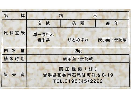 関庄糧穀 無洗米 岩手県産ひとめぼれ 2kg 白米 お米 食材 食品