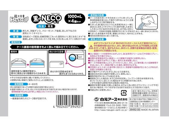 白元アース ドライ&ドライUP 黒のNECO 1000mL 4個セット