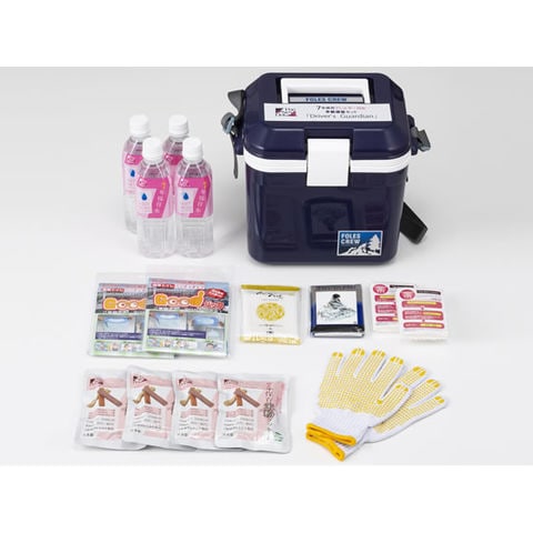 長期7年保存米粉クッキーと緊急時に必要な備品を収めた車載備蓄セットです