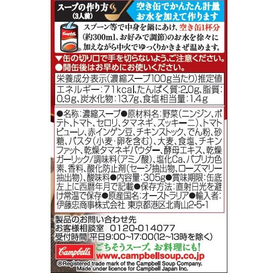 エヌアイエスフーズサービス キャンベル 濃縮缶スープ ミネストローネ KC3MN