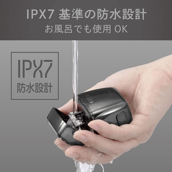 IPX7基準の防水設計、お風呂で使用OK。USB充電タイプ(充電中使用OK)。往復式5枚刃、肌に密着するフロート構造。誤動作防止、持ち運びの際に電源ボタン長押しでロックできる機能搭載。電池残量が少なくなるとLEDランプが点灯するお知らせ機能搭載。マグネット式でお手入れ簡単な着脱ヘッド、携帯や収納に便利な専用キャップとケース付き