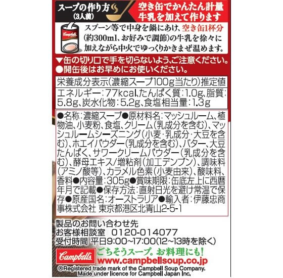 エヌアイエスフーズサービス キャンベル 濃縮缶スープクリームマッシュルーム KC3MU