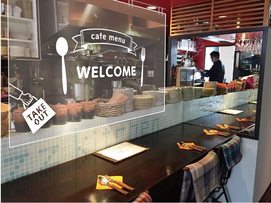 飛沫安心ガード。透明度の高いペットロールシート。抗菌仕様で清潔に。