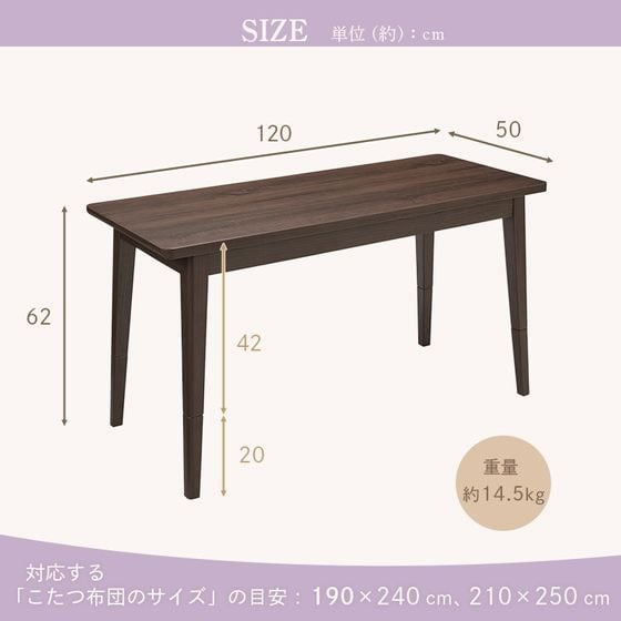 ●商品サイズ:約幅120×奥行50×高さ42/62cm