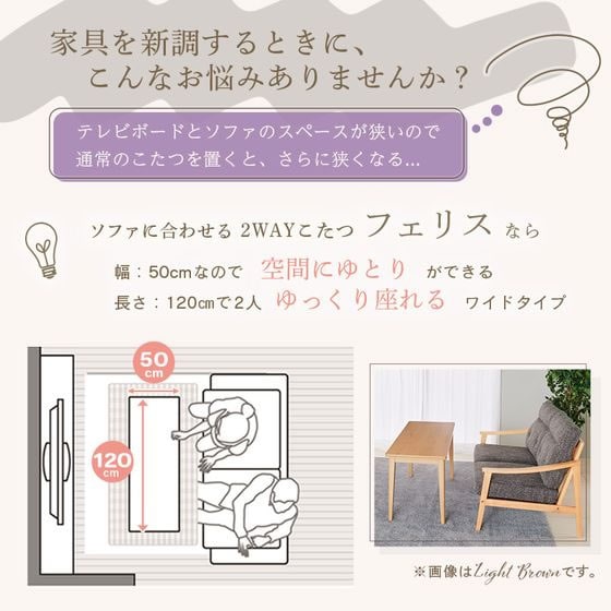 ユアサプライムス ソファに合わせるこたつ フェリス120E(BR)