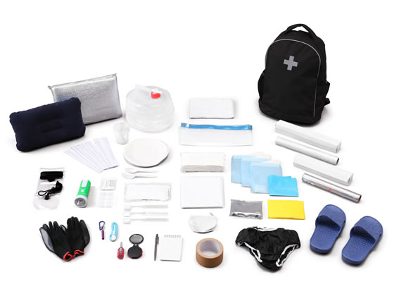 東日本大震災を宮城で経験した防災士が作った、最初の1日間をしのぐための、避難時にすぐに持ち出すべき必要最低限のなるほどアイテムを揃えています。反射板付きリュックの収納重量は約3kgです。