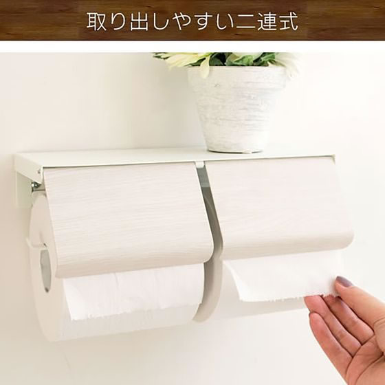 取り出しやすいペーパーはサイドから差し込むだけの簡単交換、補充が少ない二連式なのでおトイレが快適。