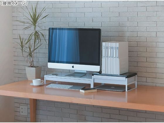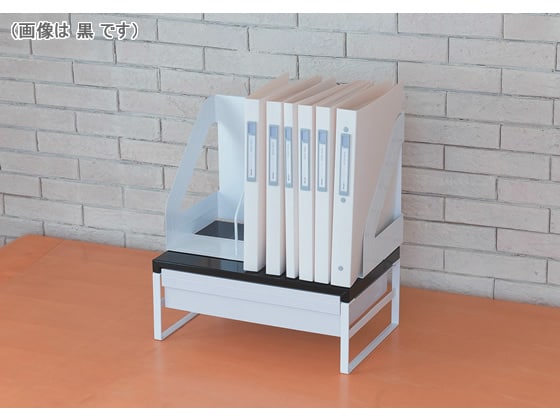 机の上に簡単に設置できる机上台。机上台を使用することで、事務スペースを簡単に確保できます。サイズは390mm幅。周辺の机上台を使用することで目線があがり、パソコンを打つ姿勢も改善されます。また、書庫内の整理に使用すれば、スペースを2段活用できます。