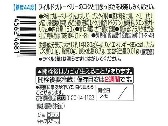 アヲハタ 55ワイルドブルーベリー 150g ジャム ペースト はちみつ 食材 食品