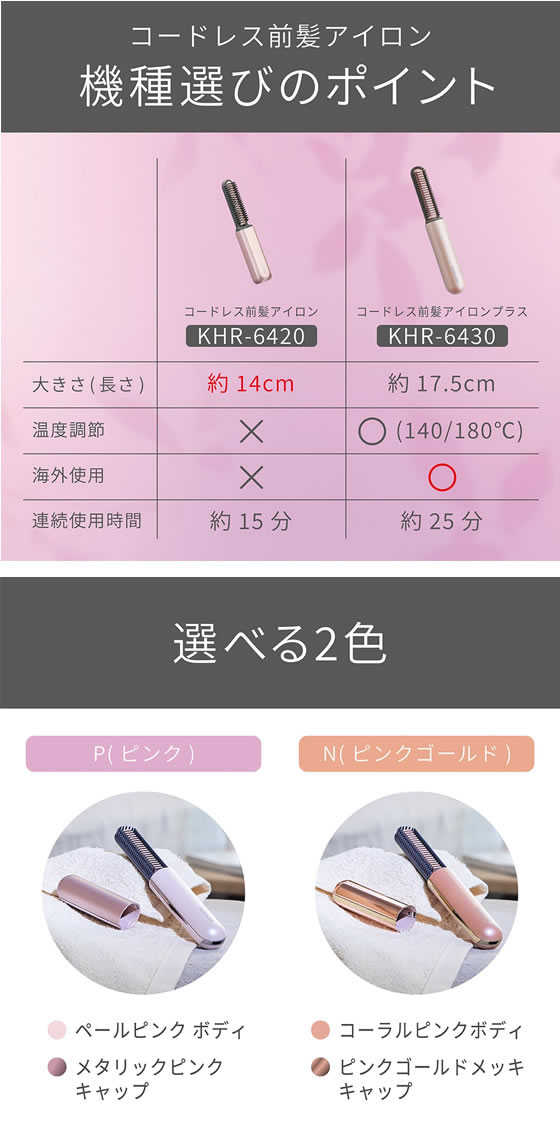 KOIZUMI コードレス前髪アイロンプラス 12mm ピンク KHR6430P