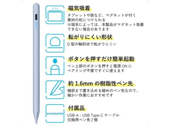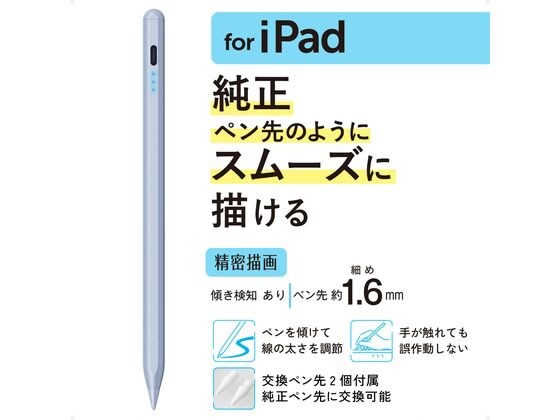【お取り寄せ】 エレコム タッチペン iPad用 Type-C充電 ブルー P-TPACSTAP07BU AC式充電器 バッテリー 充電器 スマホ タブレット関連品