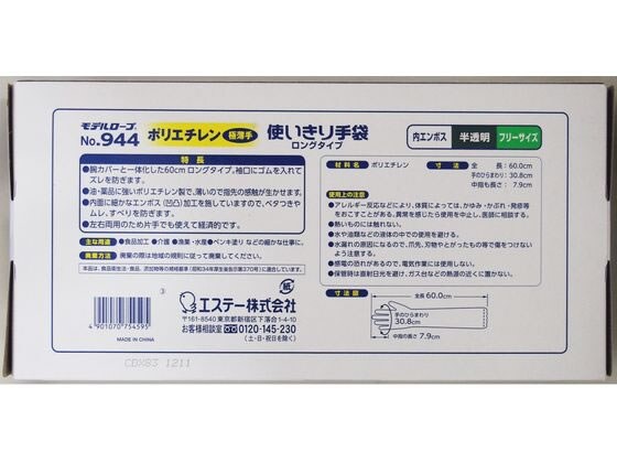 エステー ポリ使い切り手袋 ロング No.944 フリー 半透明 30枚 ポリエチレン 使い捨て手袋 作業用手袋