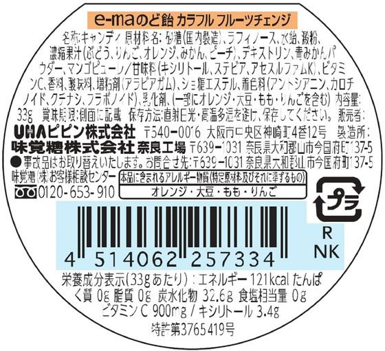 UHA味覚糖 e-ma のど飴 (容器タイプ) カラフル フルーツチェンジ