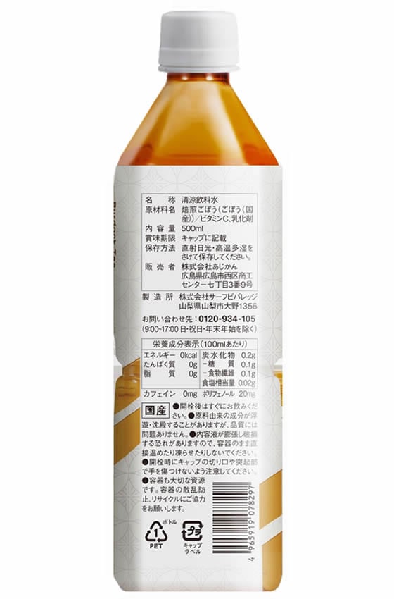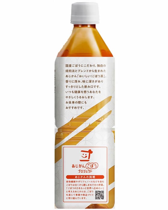 あじかんが14年間かけて開発したペットボトルごぼう茶。