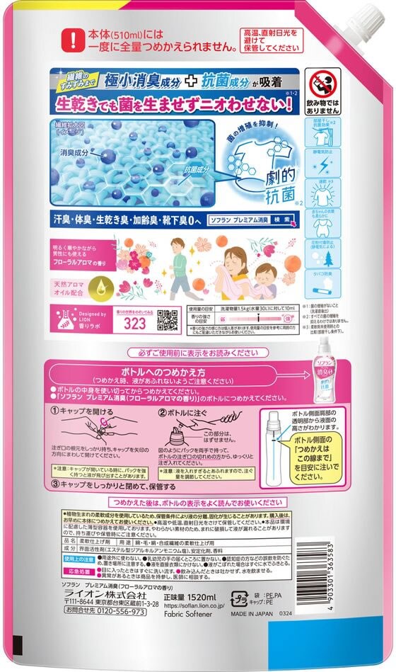 ライオン ソフラン プレミアム消臭 フローラルアロマ 詰替 1520mL×6個