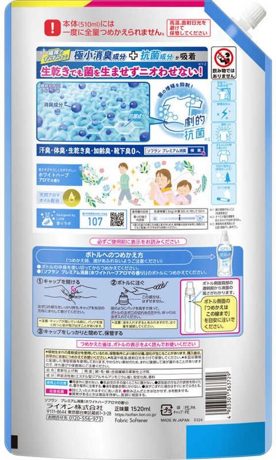 ライオン ソフラン プレミアム消臭 ホワイトハーブアロマ 詰替 1520mL×6個