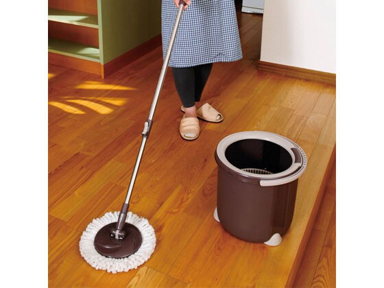 モップを回転させて洗浄・脱水!手を汚さず、体をかがめずに水拭きができます。