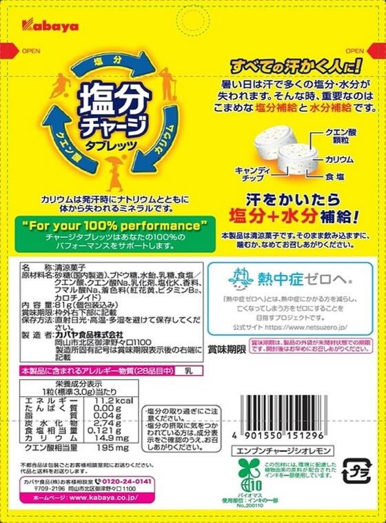 カバヤ食品 塩分チャージタブレッツ 塩レモン 81g タブレット 飴 グミ お菓子