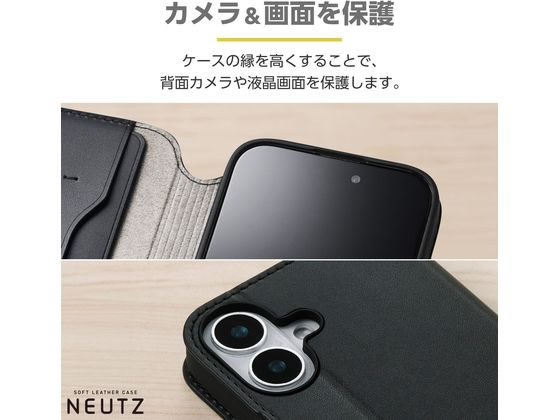 【お取り寄せ】 エレコム iPhone16ケース レザー ブラック PM-A24APLFY2BK スマートフォン用ケース カバー スマートフォン関連品 スマホ タブレット関連品