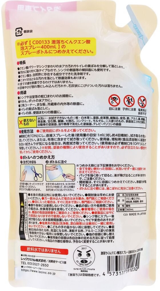 レック 激落ちくん クエン酸泡スプレー 詰替 360mL 厨房用洗剤 キッチン 洗剤 清掃