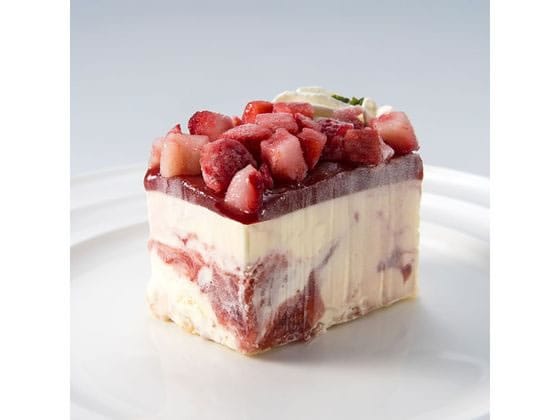 濃厚なバニラアイスに、甘酸っぱいストロベリーソースをミックス。底に敷きつけたキャラメルクランチのサクサク食感がアクセントです。いちごたっぷりで、見た目にも華やかです。