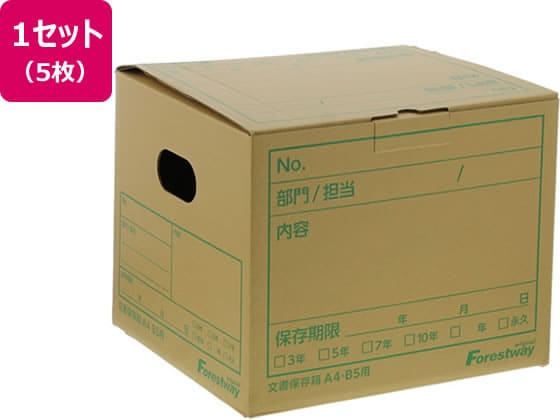 送料無料 Forestway 文書保存箱 A4・B5用 5枚 ファイルボックス ファイルケース ふた付き フタ付き 業務用 まとめ買い 持ち運び 紙製 文書保存箱