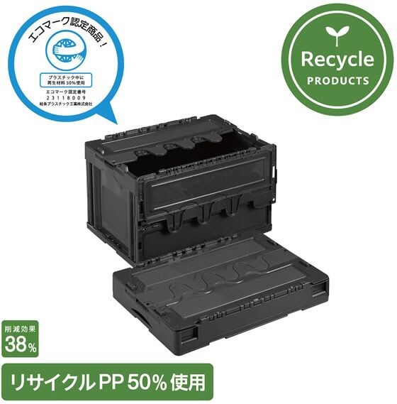 リサイクル材を50%配合。バージン品と比較し、38%の削減効果。本製品のご使用により、環境配慮の取り組みを実現出来ます。