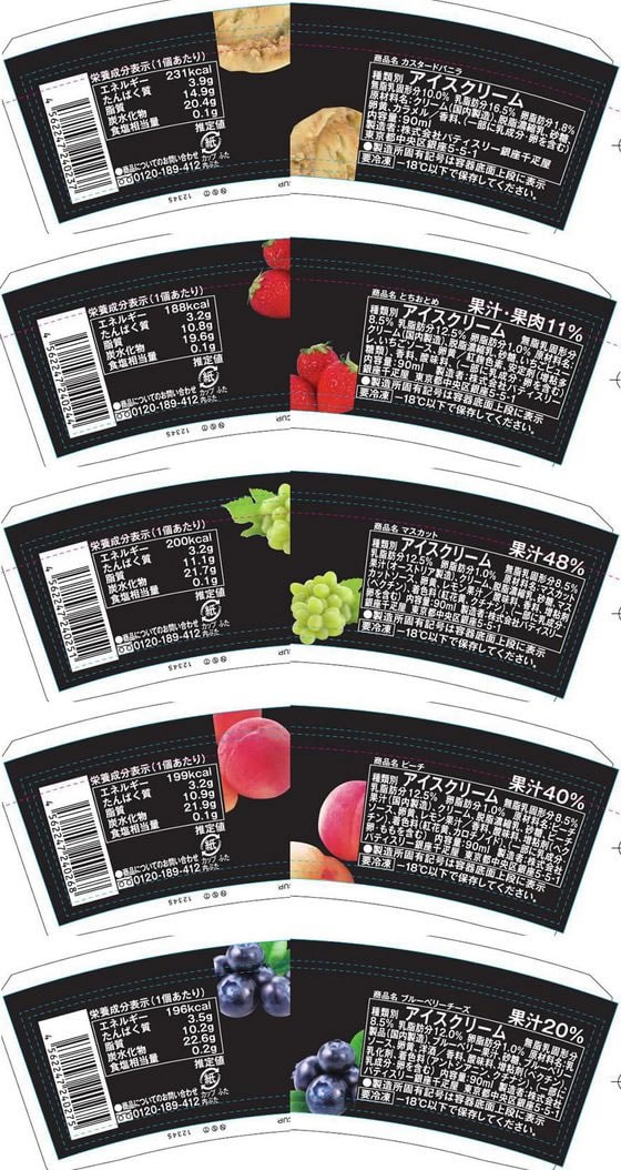 ●内容量:とちおとめ・マスカット・ブルーベリーチーズ・ピーチ・カスタードバニラ 各90ml×2個