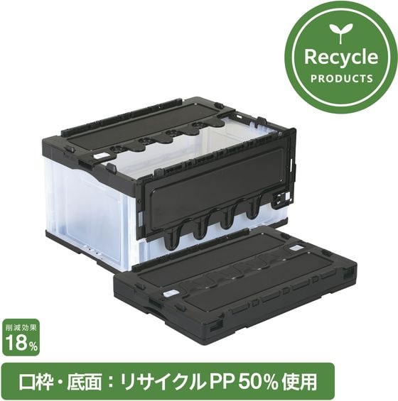 リサイクル材を50%配合(側面のみPP)。バージン品と比較し、18%の削減効果。本製品のご使用により、環境配慮の取り組みを実現出来ます。