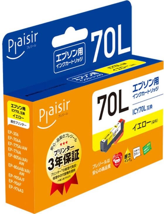 【お取り寄せ】 プレジール 互換インク ICY70L対応 PLE-E70L-Y エプソン EPSONイエロー インクジェットカートリッジ インクカートリッジ トナー