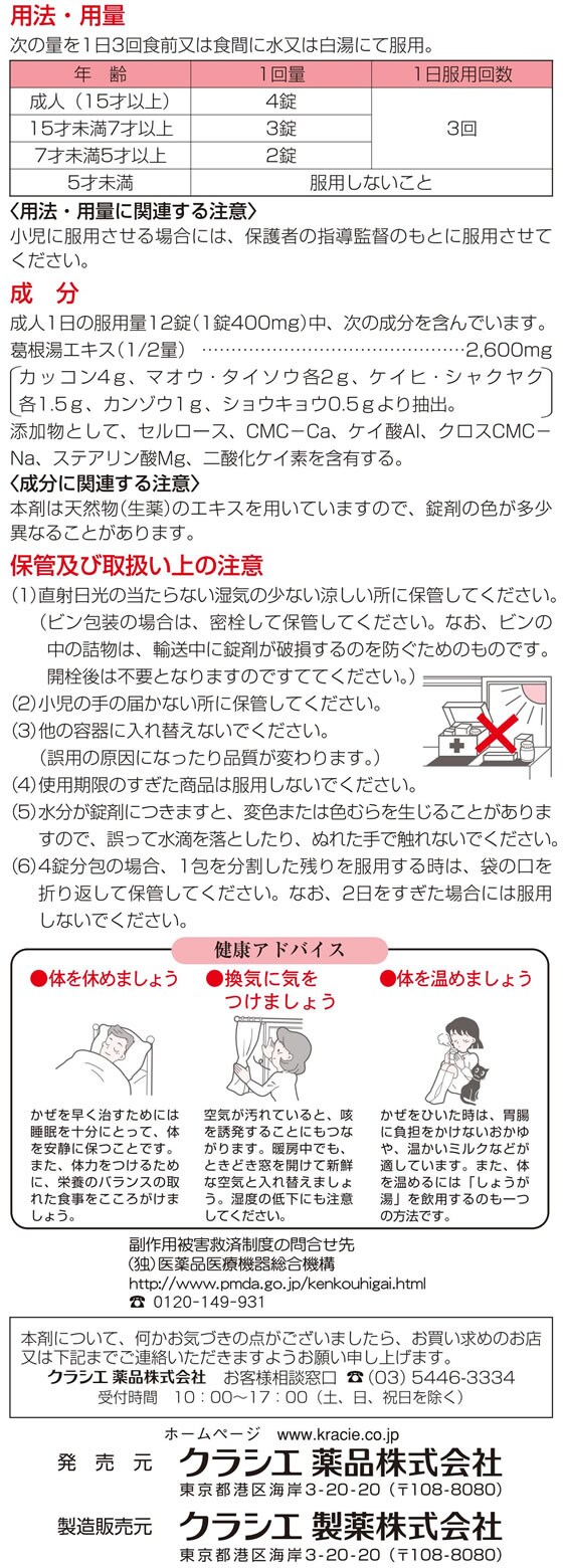 クラシエ薬品 kracie くらしえ かっこんとう カッコントウ 漢方 漢方薬 漢方製剤 風邪薬 かぜ薬 感冒薬 錠剤 1本 240錠 【第二類医薬品】 お薬 おくすり ドラッグ 5歳以上 さむけ