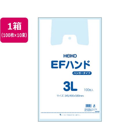 送料無料 ヘイコー EFハンド 3L(345×580×145mm) 乳白 100枚×10束 レジ袋 乳白色