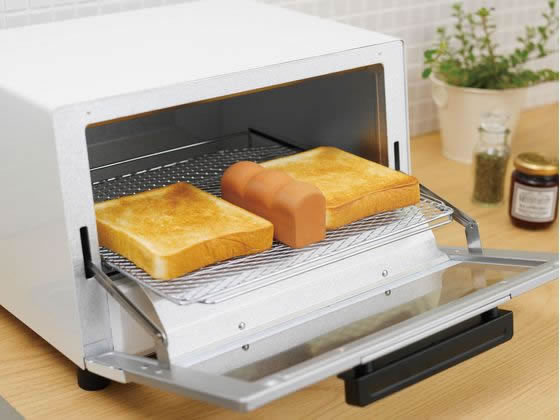 水に浸してからトースターに入れ、パンと一緒に焼くだけ。庫内にスチームが出て、パン内部の水分を保ちつつ、外はサクッ、中はふわっと美味しく焼き上げます。かわいいミニ食パンのかたち。