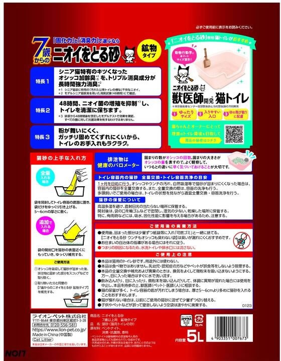 LION ニオイをとる砂 7歳以上用 鉱物タイプ 5L 4袋