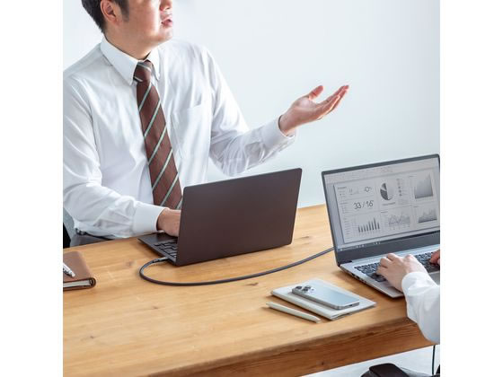 USB20Gbps(USB4Gen2×2)の「SuperSpeed+USB(転送速度20Gbps)」に対応した高品質ケーブル。USBType-Cポートを持つパソコンやタブレット端末などと、USB機器(Type-Cポートを持つ機種)を接続するためのケーブル。DisplayPortAltMode対応のType-C入力ポートを持つモニターや電子黒板に接続して、映像・音声出力に対応。(4K60Hz対応)