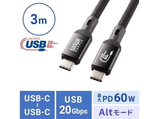 【お取り寄せ】 サンワサプライ USB20Gbps Type-Cケーブル(3m) KU-20GCCP6030 USBケーブル C to ケーブル 電源タップ 配線パーツ 家電