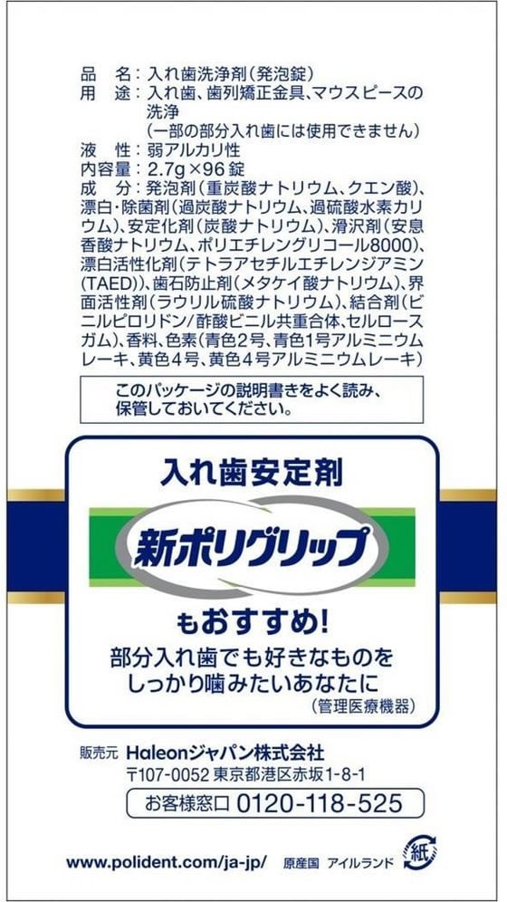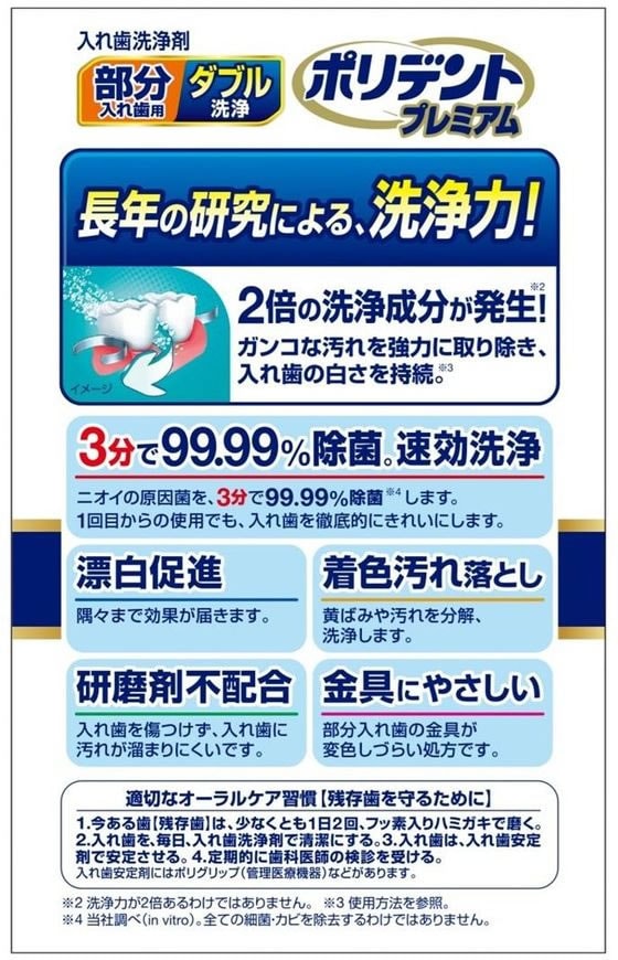 Haleon 部分入れ歯用 ダブル洗浄 ポリデントプレミアム 96錠