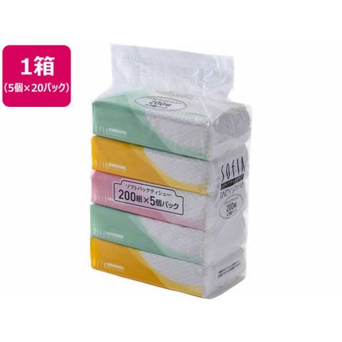 送料無料 マスコー製紙 ソフィアタッチピュア ソフトパックティシュ 200組 5個×20パック ティッシュペーパー