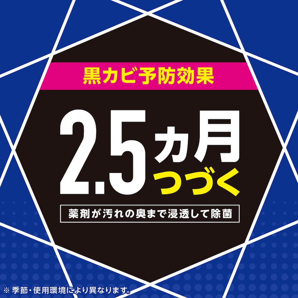 浴室全体に、汚れの奥まで浸透して除菌し、最長2.5ヵ月黒カビを生やさない!