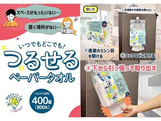 送料無料 アスト アスハピ つるせるペーパータオル 400組×20パック 中判タイプ ペーパータオル